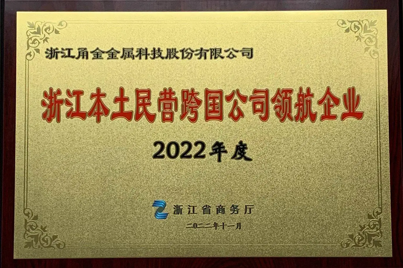 期间,浙江省商务厅发布了2022年度浙江本土民营跨国公司50家“领航企业”名单,并向“领航企业”代表进行了授牌,甬金股份凭借在“一带一路”沿线国家的项目发展和经营业绩成功入围。